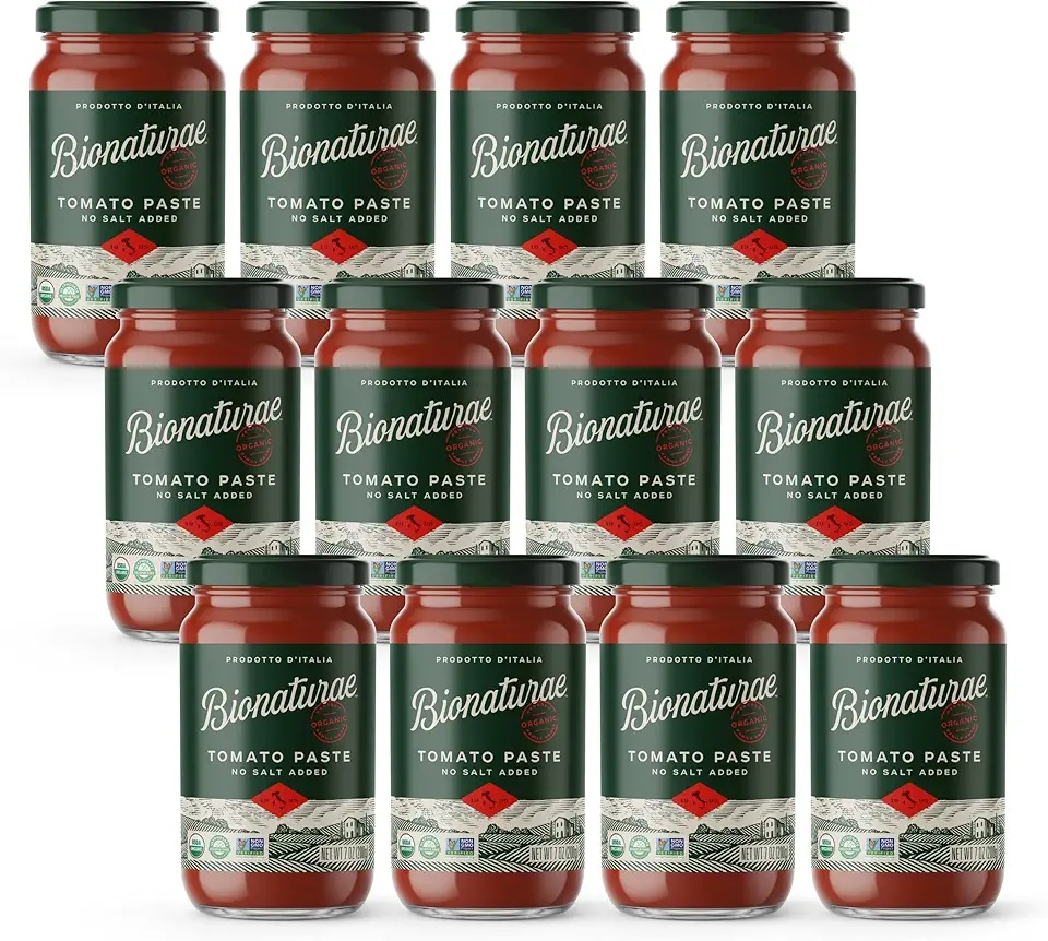12-pack of 7 oz organic no-salt tomato paste – concentrated, vine-ripened tomatoes for rich flavor. Pure and versatile for sauces, soups, or stews. Organic, no additives – perfect for controlling salt in healthy cooking.